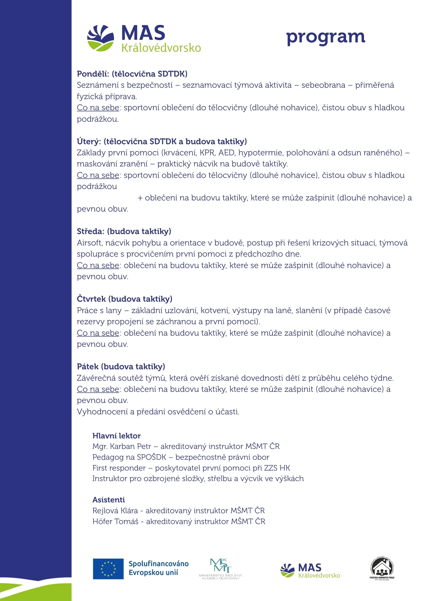 V případě dotazů se obracejte na garanta táborů MAS Královédvorsko, paní Magdalénu Frolíkovou.